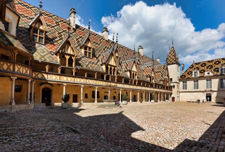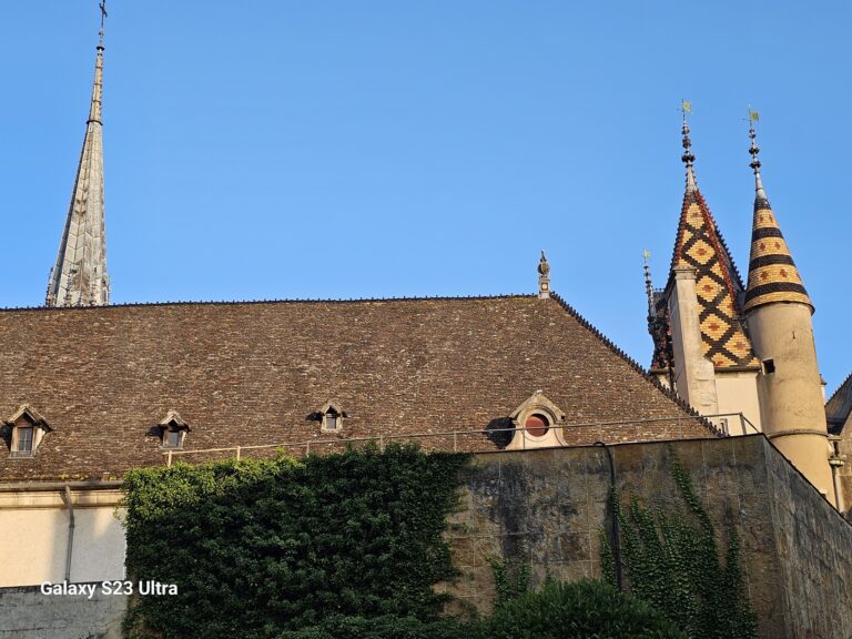 En flânant dans les ruelles pavées, impossible de manquer l’Hospice de Beaune, fondé en 1443 par Nicolas Rollin, chancelier du duc de Bourgogne.