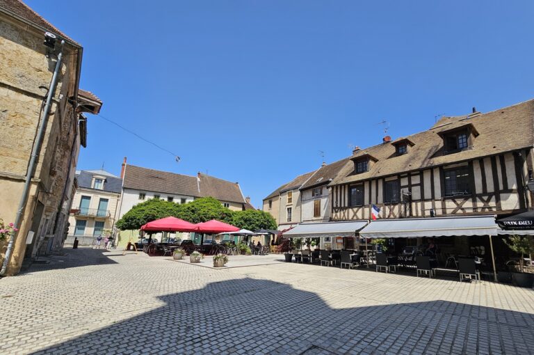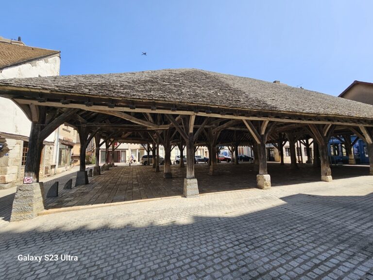 Pour finir cette belle journée, je roule jusqu’à Nolay, un charmant village bourguignon niché entre collines et forêts. Sa halle médiévale en bois est l’un des trésors du bourg. J’ai eu la chance d’y dîner sur la place, au Resto des Halles, une excellente adresse où la cuisine est à la fois authentique et raffinée. Une vraie pépite, à découvrir absolument si vous passez dans le coin !